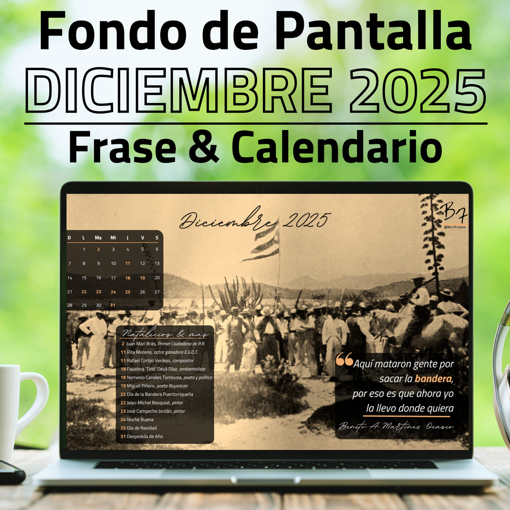 Diciembre 2025: Bandera de Puerto Rico (Fondo de pantalla + Frase + Calendario Nacional)